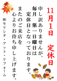 さて、明日11月1日(日)は弊社定休日となりますので
