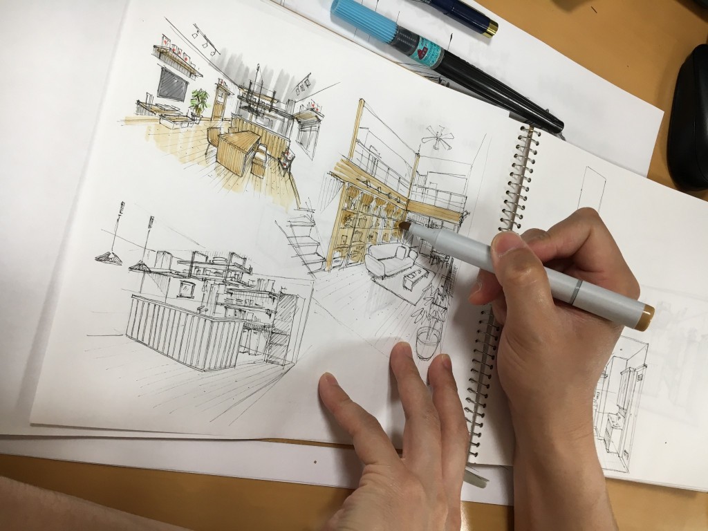 設計部 課長の石堂が、こんな感じでイメージ図を描きます。