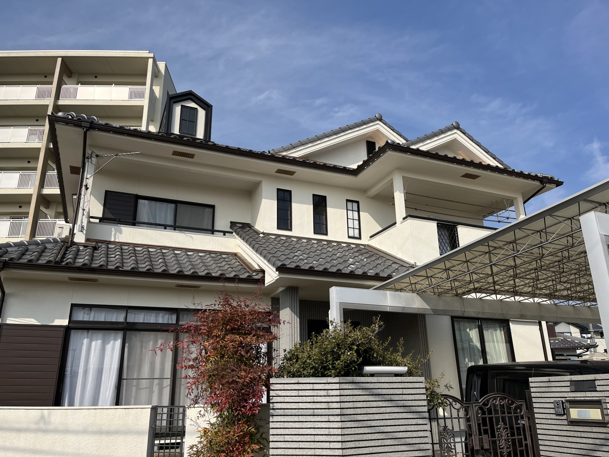足場を組むならついでにと、建ててから1度も塗装していなかった外壁の塗装もご依頼いただきました。
