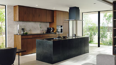 アイランドキッチンは、リビングやダイニングから常に見える場所にあるため、デザインや素材にこだわることで、空間の主役になると思います。リビングの印象がぐっと引き締まりますね。