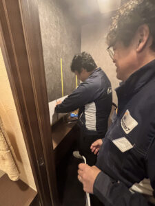 今回、モリシタ店舗では、3×3の9枚のエコカラットセルフを、トイレと受付の2か所にわけて貼ることにしました。