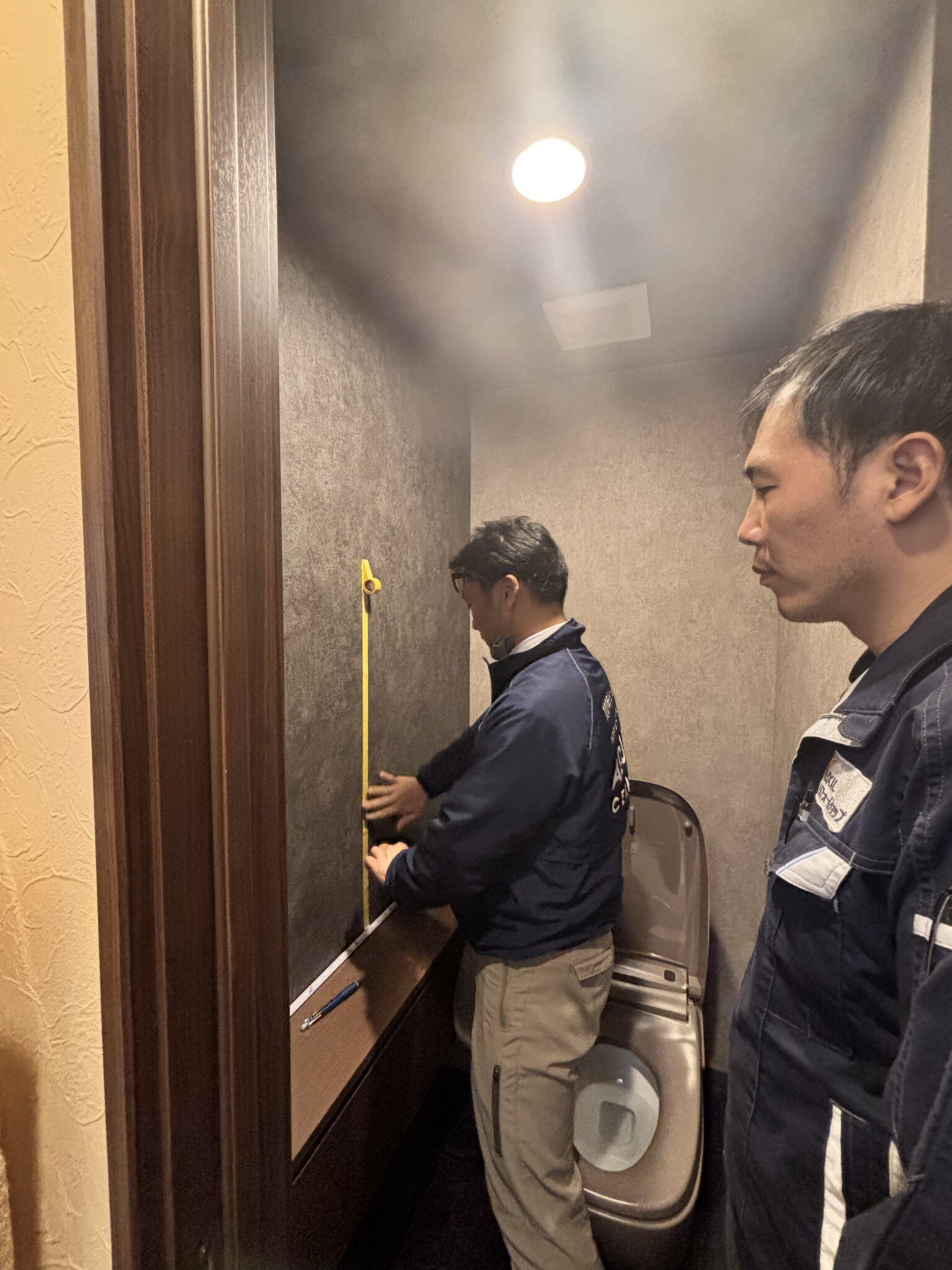 今回、モリシタ店舗では、3×3の9枚のエコカラットセルフを、トイレと受付の2か所にわけて貼ることにしました。