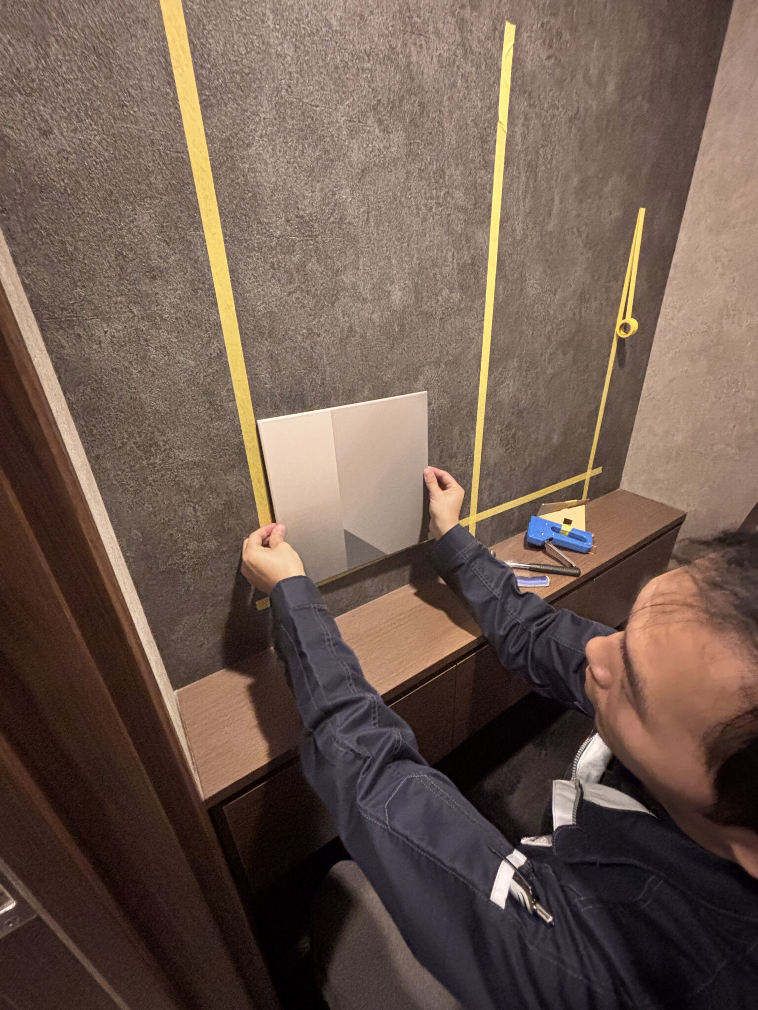 取付で一番難しいポイントは、最初の位置決めのマスキングテープをまっすぐ貼ることかもしれません…笑