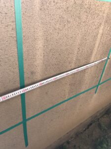 緑のテープを張ってあるところが金属探査機の反応が出たところです。(鉄筋があると予測される箇所)