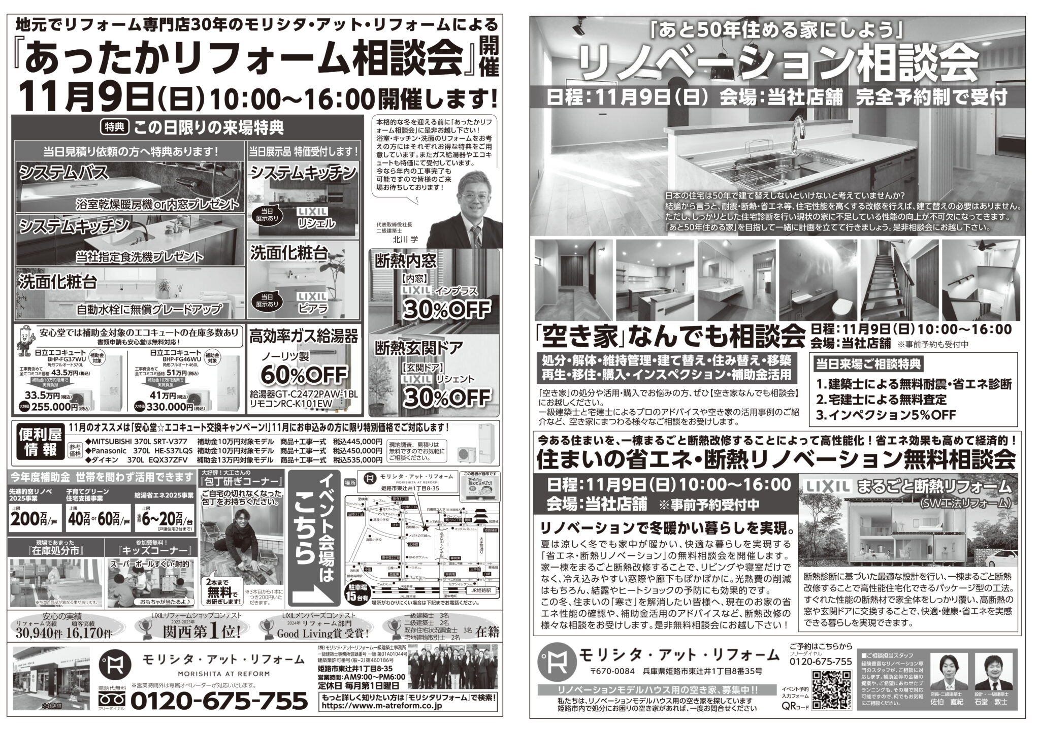 明日9日はぜひ、東辻井のモリシタ・アット・リフォームにお越しください!