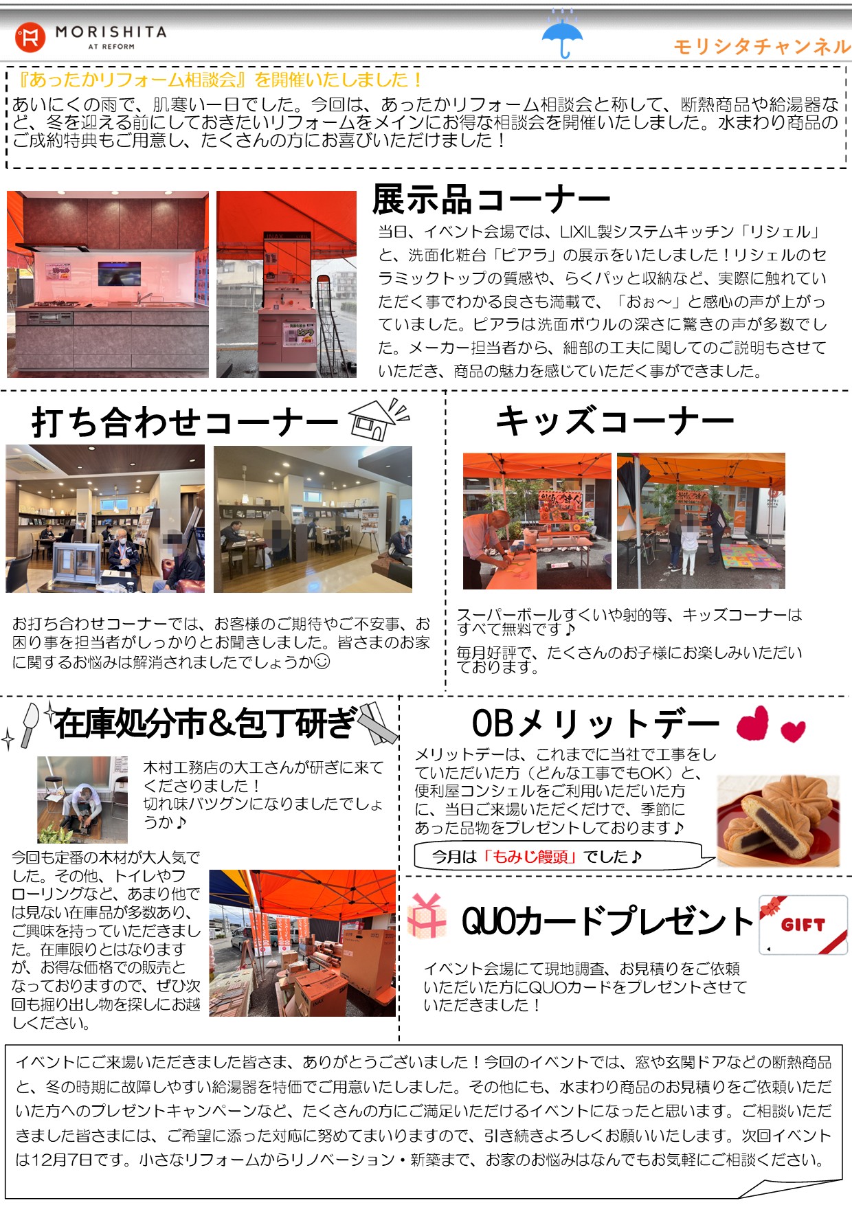 11/9(日)あったかリフォーム相談会 2025-11-09 by staff Tweet 関連記事給水配管の改修猫と暮らす家⑤姫路市 D様邸借家改装工事 完成しました最大200万円の補助!先進的窓リノベ事業 Tweet