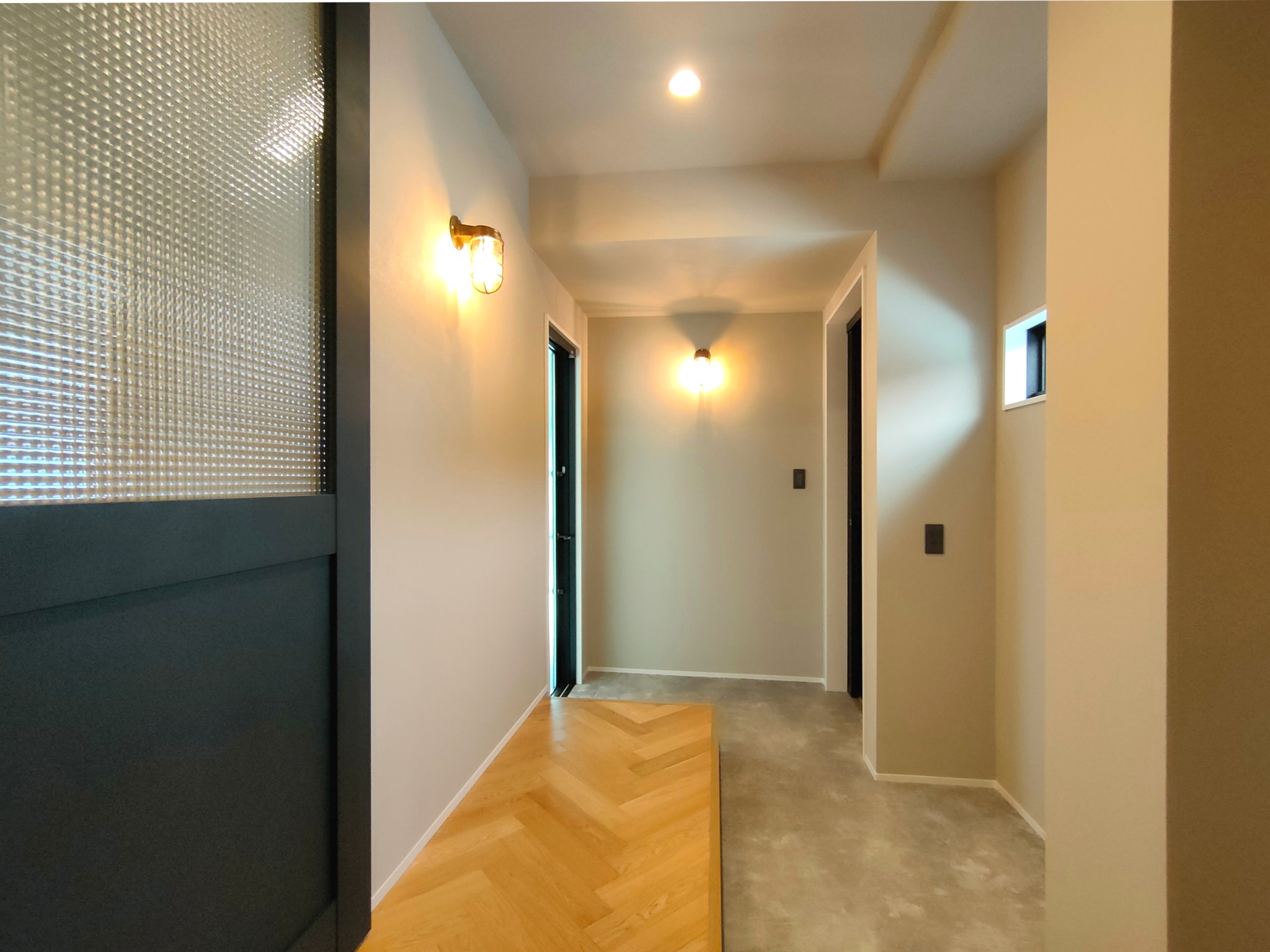 シューズクロークは照明による影の濃淡が空間にアクセントを与えています。