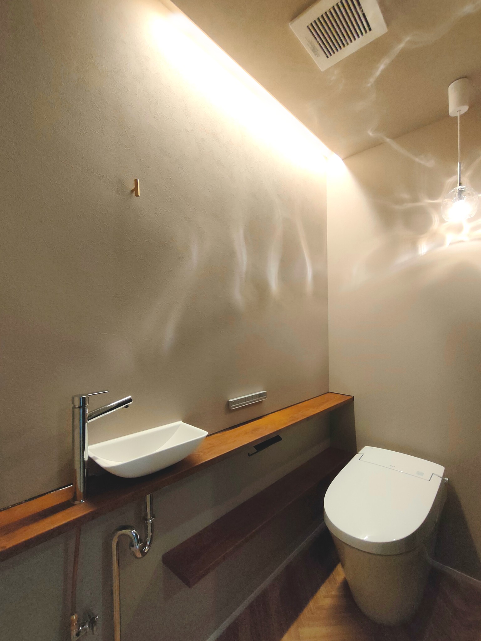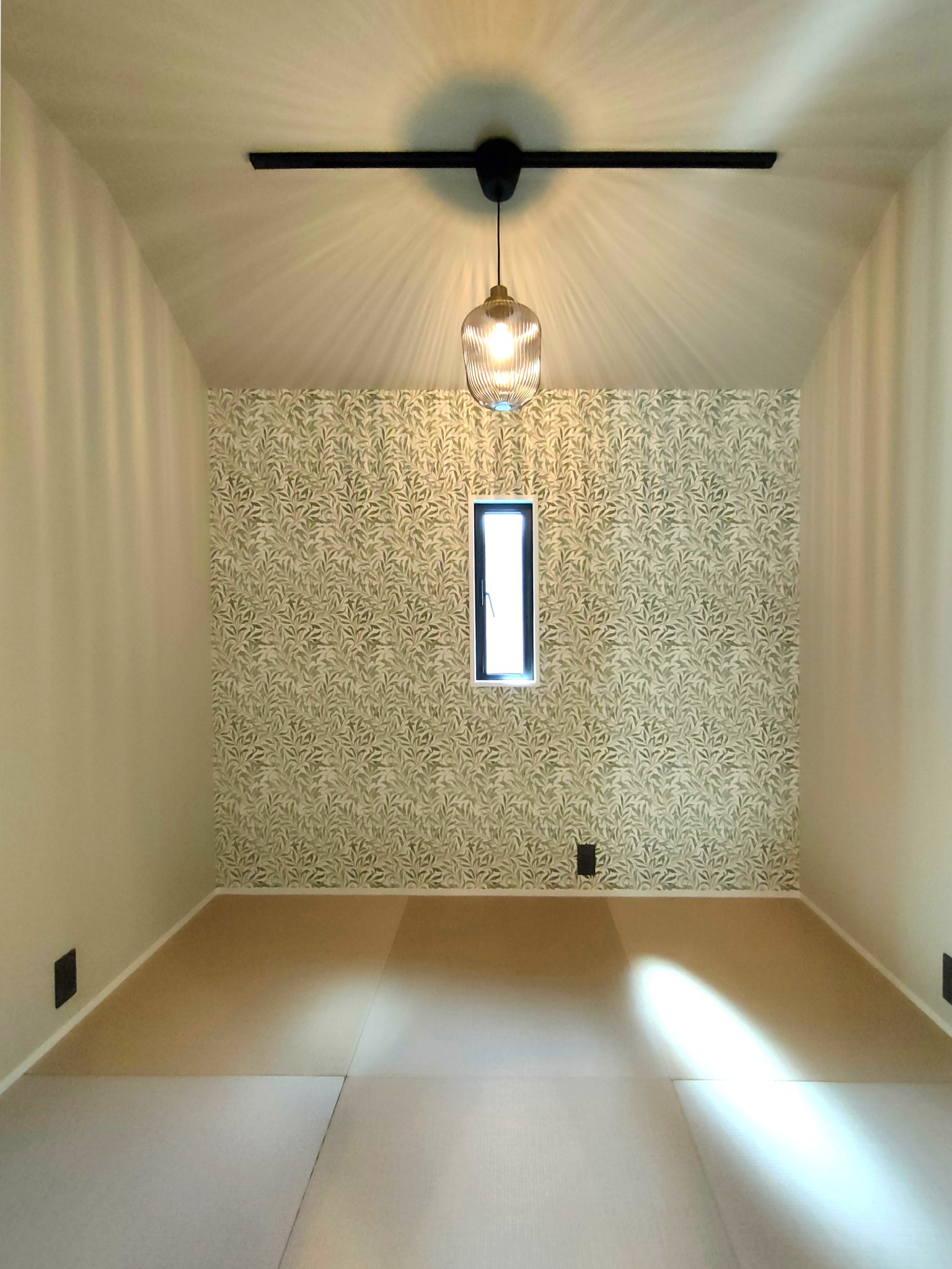 畳スペースとトイレには模様入りのペンダントライトを使用し、壁や天井に美しい陰影がうつっています。