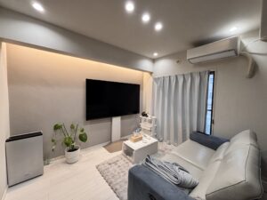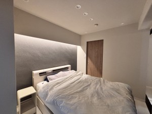 リビング、寝室の壁際に間接照明を取り入れ、空間に広がりが生まれました。
