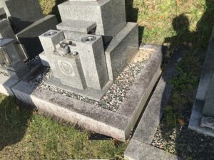 墓石底板に敷き込みの化粧砂利部分に、常に雑草が生えたり、