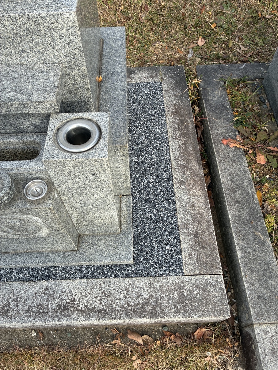 墓石底板に敷き込みの化粧砂利部分に、常に雑草が生えたり、