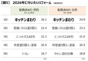 キッチン男子急増中!?2026年やりたいリフォーム1位は夫婦ともに「キッチンまわり」