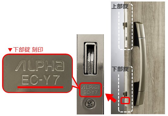 玄関ドアの下側の鍵をドアの横から見た時に、『EC-Y7』の刻印がある場合には、スマートフォンに対応しています。