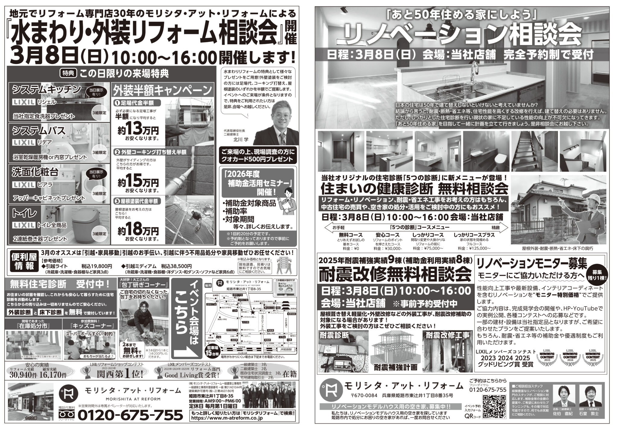 各商品3組様限定の水まわり商品ご成約特典や、外装半額キャンペーンをご用意しております。