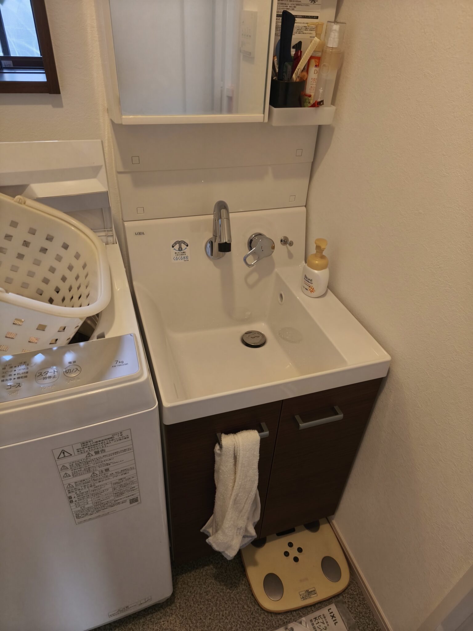 太子町S様邸、洗面化粧台取替え工事 完成しました。 2026-03-16 by staff Tweet こんにちは!リフォーム事業部の荻本です。 この度、洗面化粧台の取替えをさせていただきました。 こちらが施工前です。 こちらが施工後です。 外にあった洗濯機を併設するため、配管からやり直しました。 価格は配管工事、内装も含めた金額です。 工期:5日 費用:約60万 関連記事サッシについて姫路城マラソンまであと・・・・イベントご来場、ありがとうございました!姫路市A様邸 水栓金具取り替えました。 Tweet
