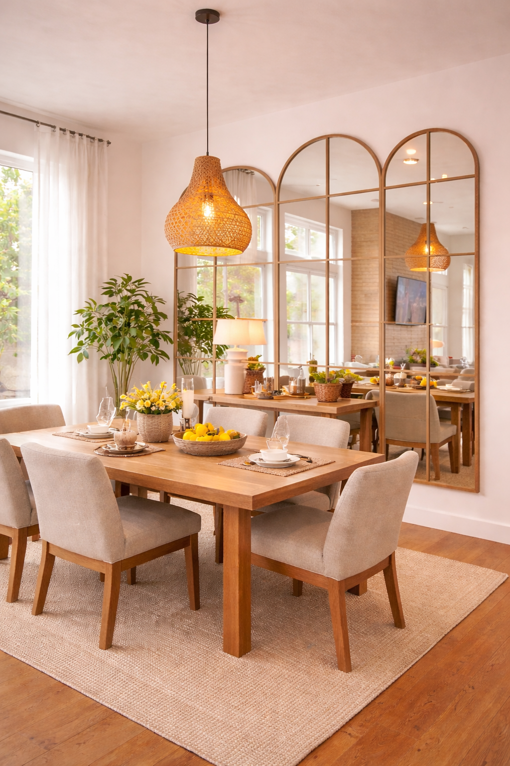 鏡は部屋を広く、明るく見せることができるだけでなく、お出かけ前の身だしなみチェックができるなど、実用性もあります。