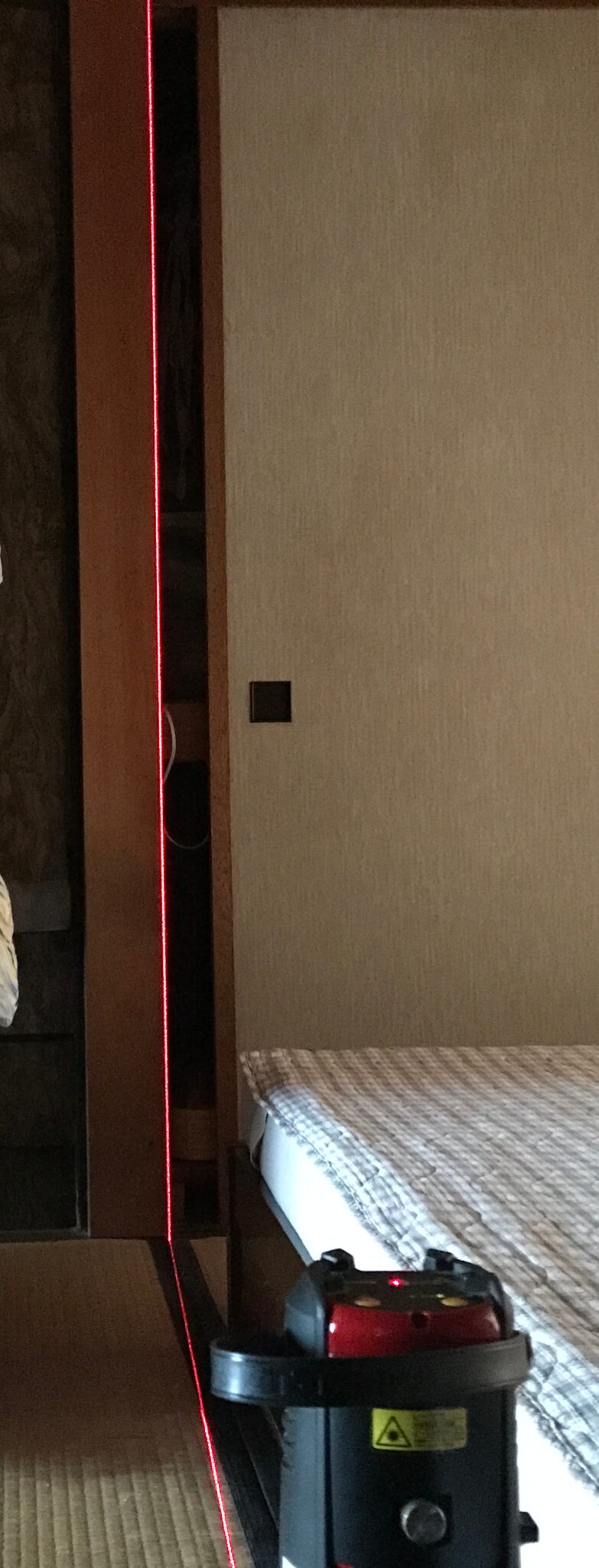緑のテープを張ってあるところが金属探査機の反応が出たところです。(鉄筋があると予測される箇所)