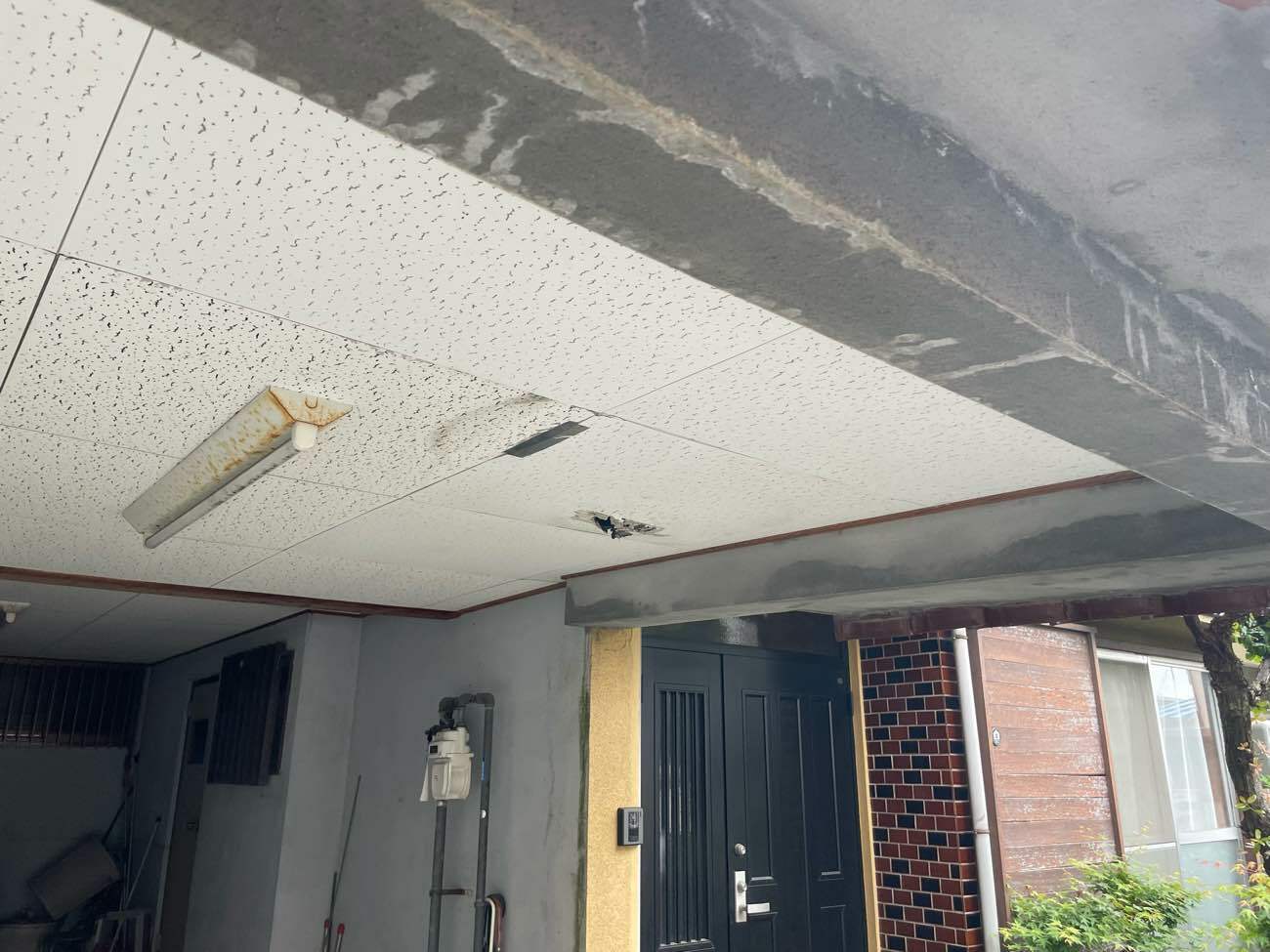 軒天の一部が落下して、今回の補修工事となりました。