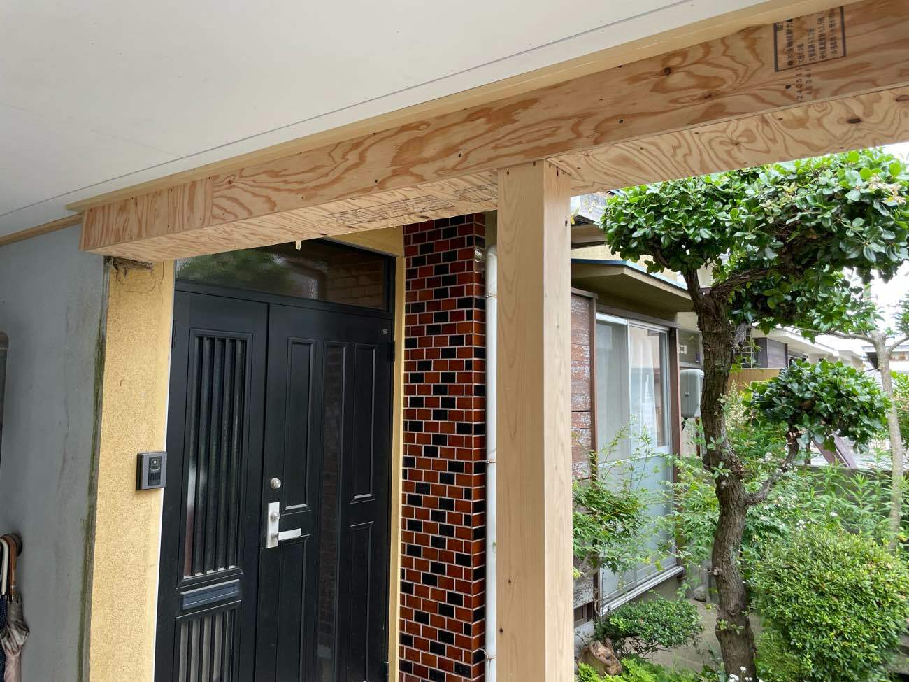 軒天仕上がり 上部玄関ポーチコーキング