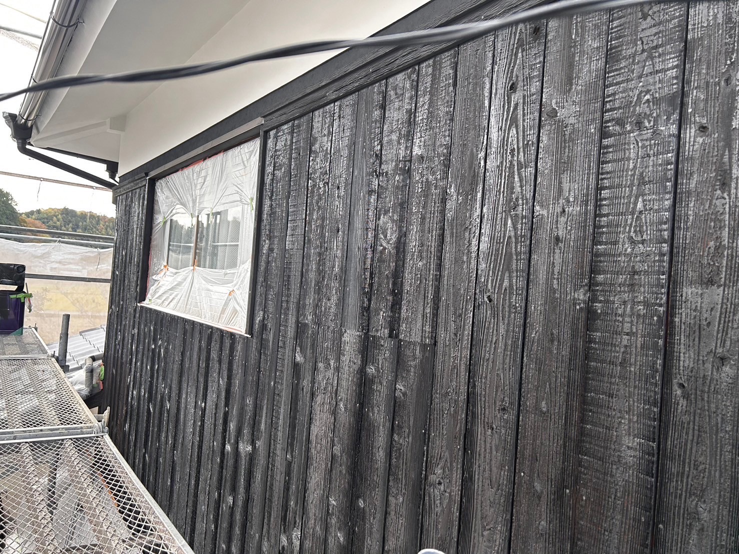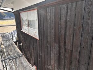 今回は和風住宅の外壁に多く使われている漆喰と焼き板の塗装工事を行いました。