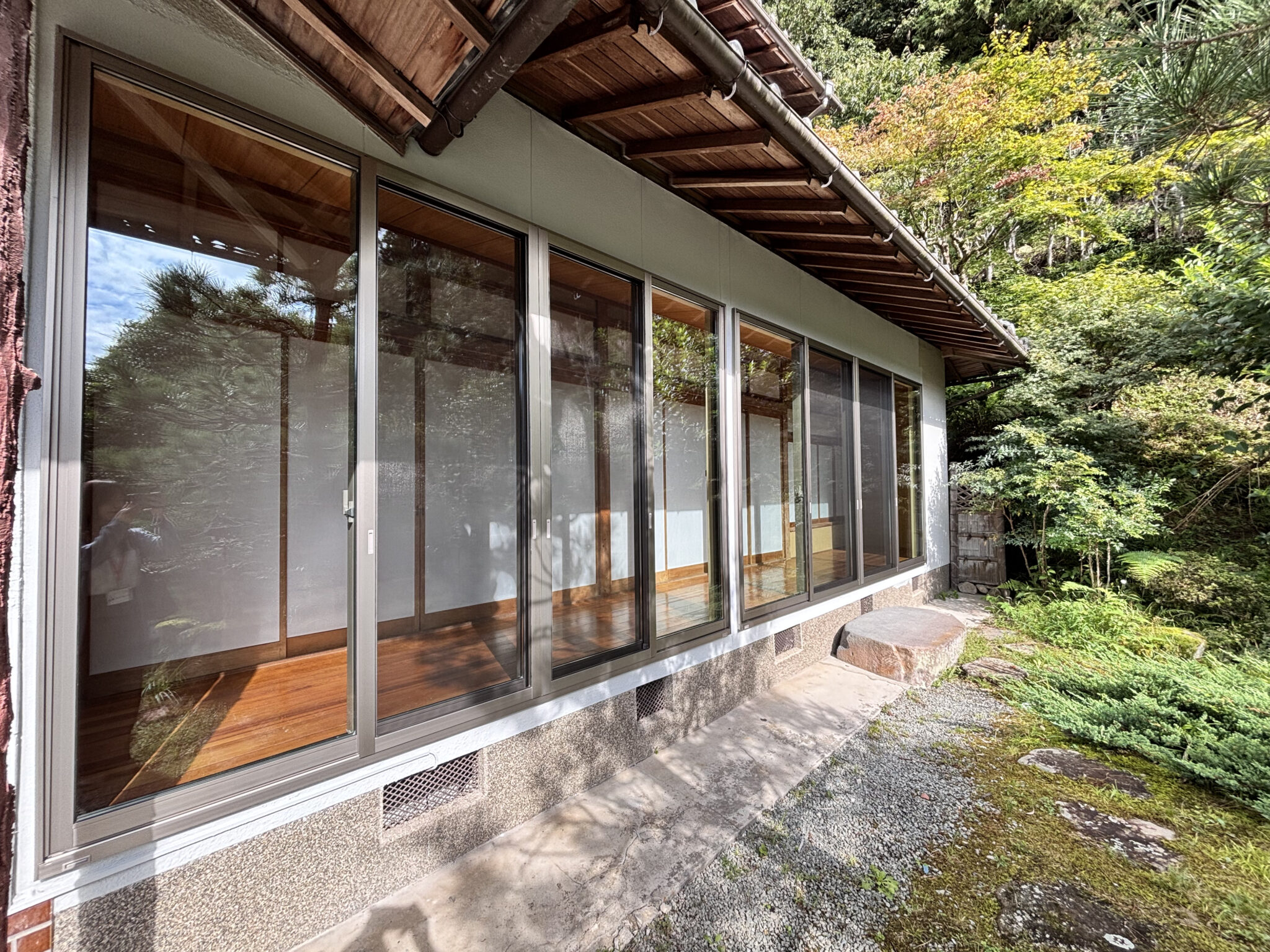 外観は玄関をオシャレな片引き戸に変更し、外壁をツートンカラーに塗り分けしました。