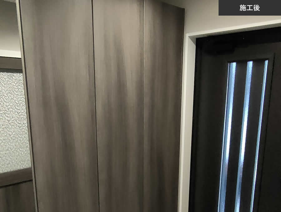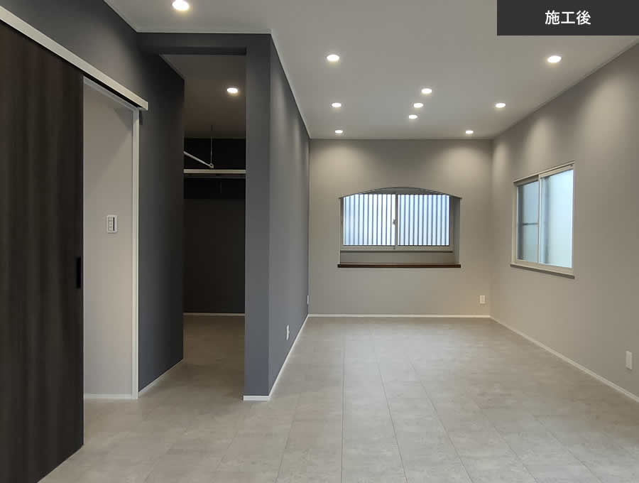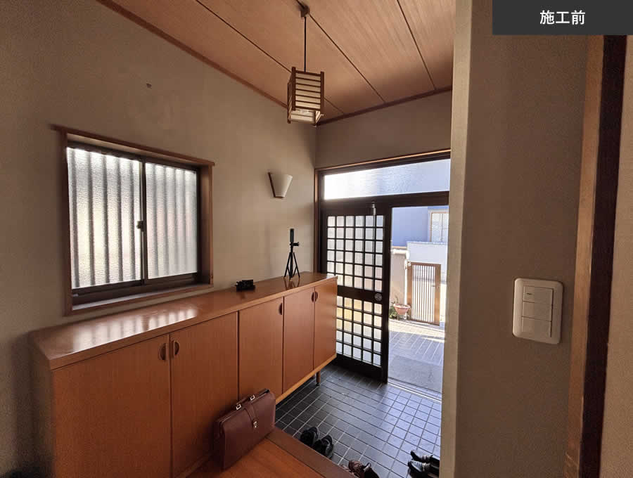 その上から新たな仕上げを追加します。 - 玄関ドアは撤去、サッシは原則再利用が標準工事です。