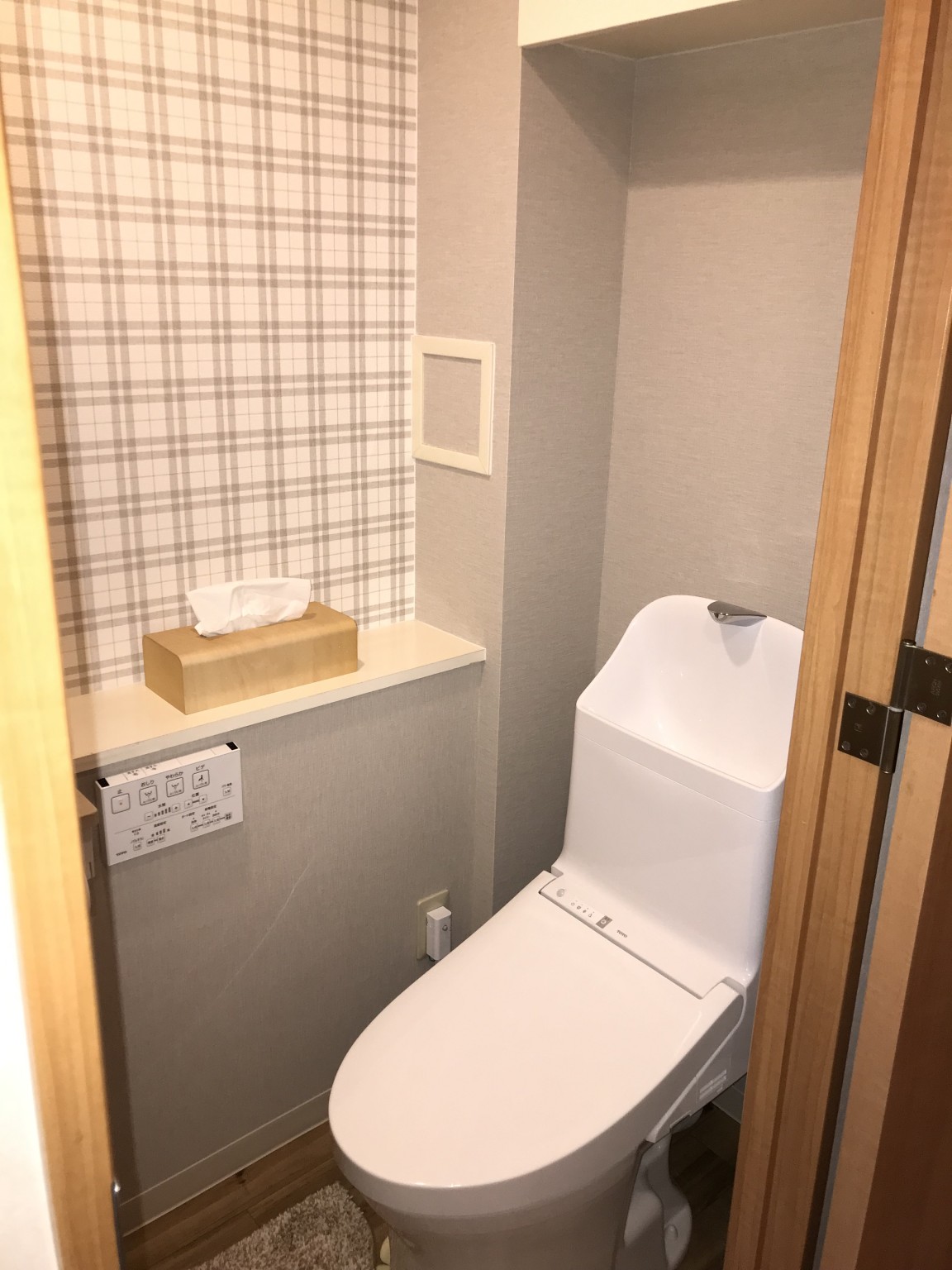 こんにちは! リフォーム事業部の福塚です。この度、トイレ改装工事が完成しました。 マンションの壁排水タイプのトイレで、経年劣化により、今回改装されました。 排水接続部材の破損の可能性をふまえ、部品を用意した上での施工とさせて頂きました。 内装については、お客様のセンスにて壁アクセントクロス、床フローリング柄とさせて頂き、イメージアップされた仕上がりとなり、喜んで頂いています。 |