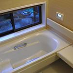 座りながら入浴できるベンチカウンター付の仕様にしました。 |